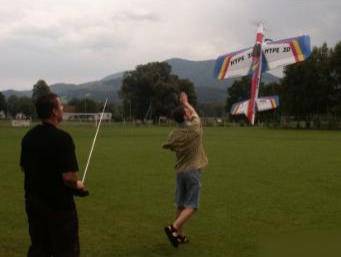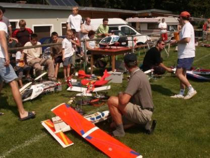 Bei der Flugshow am Sportplatz war dann einiges los im Rainfelder Luftraum.Ein Flieger wurde beispielsweise mit der Hand senkrecht weggestartet, und einHubschrauber nahm vom Boden Badeschlapfen auf und flog dann damit.