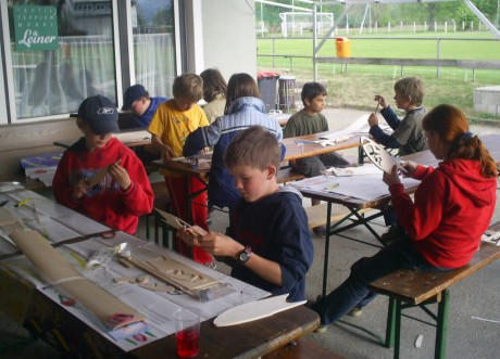 6. Fliegerbasteln am 30. April mit 16 Teilnehmer. Aus dem Grund wurden auch 2 Gruppen gebildet