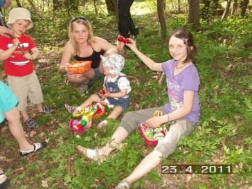 Am 23. April war wieder das Osternestsuchen in der "Schleiferer Lust" mit Rekordteilnehmerzahl. Über 30 Kinder warten hier auf den Start in das Augelände