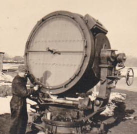 an einem der riesigen Flakscheinwerfer, welche