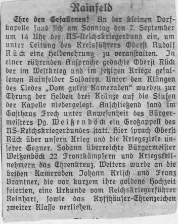 Eingerückt im Jahr 1939, darunter auch der Rainfelder Karl Steyrer